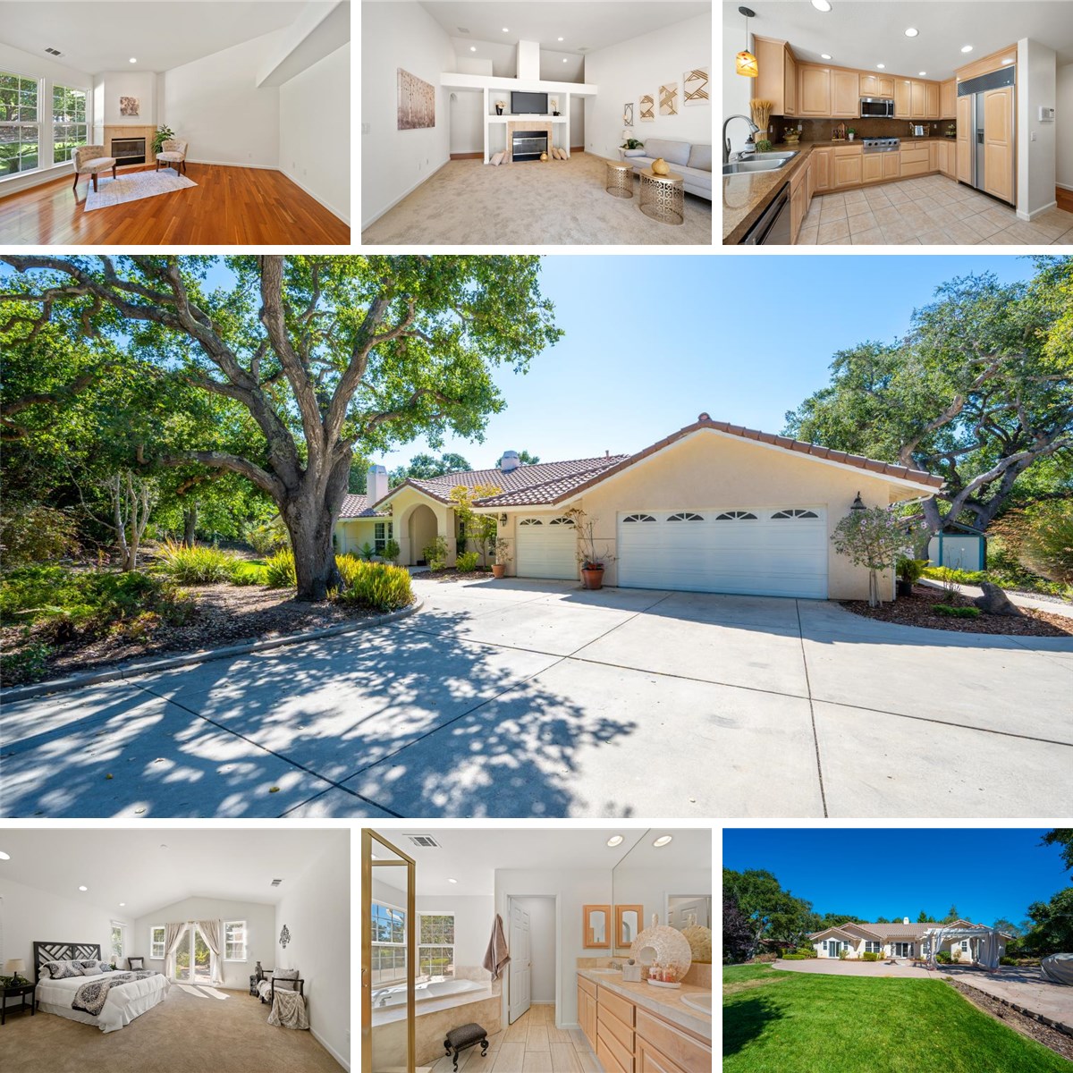 new carpet, new interior paint, A/C, large 3 car garage, single level, two primary suites,